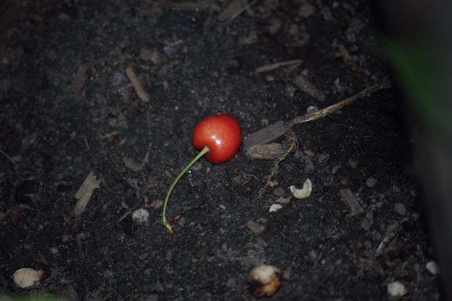 按照規則,這櫻桃樹一半屬於我家,但樹太高,我家沒人有那麼勤快爬樹採摘。每年都是任憑紅嘟嘟的果子落下: