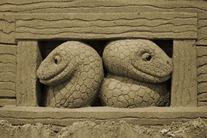 沙匠出乎木匠意外地说:“生动,栩栩如生不是我的特色。我不追求生动,也不追求栩栩如生。我要的是一种有艺术特色的夸张,要那种与众不同的,独到的特质。我 自己喜欢流畅的线条和饱满且平缓变化的曲面。没有突变的轮廓很难体现动物的气质,但它给人的是一种敦厚驯良温柔的观感——形象一点地说,我塑造的动物,让 孩子在黑暗中突然地撞上,孩子不会被我的动物形象吓得哭起来。”