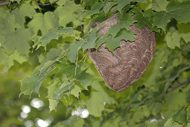 从春末起,整个夏天加上秋初,野蜂在闲花野草中飞舞,采集了花粉,就回巢中卸载然後再出来。树林里不大有人去,这种蜂也不叨扰人。据说热带丛林中的野蜂可以毒死人,可是这种在加拿大常见的野蜂毒性很小,基本上不会伤人。然而,少年男女盯上了蜂巢。