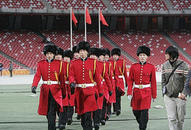 頭頂再插跟雞毛撢子 , 就像英國白金漢宮的衛兵啦 .