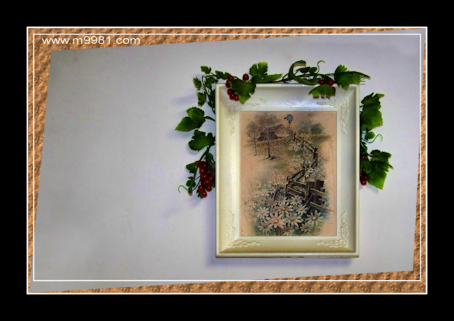 呵呵 , 有創意 , 廢物利用 , 一兩塊錢的畫也成了作品啦 , 不錯 .