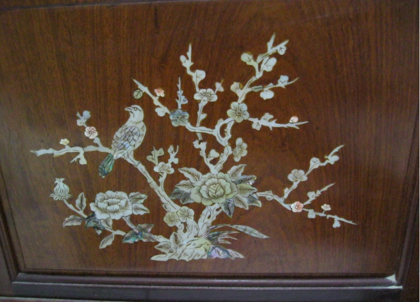 前幾日,丟棄個櫃子,這花紋是用貝殼嵌入,再磨平上光。心中真不捨,可是家人都嫌佔地方,只好丟棄了,六個圖照一圖留記念。感想這個櫃子就像功夫,精緻有文化,卻不知有何大功用?