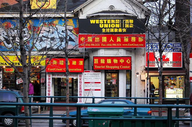 吃完了以後,顺便拍了一张照片。照片没有什么特别,多伦多唐人街一年到头都是这样。
