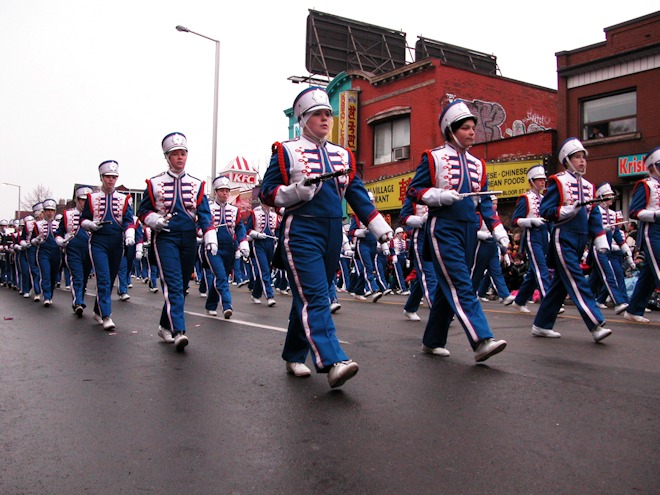 在我看来,高中和大学的行进乐队是最好的,演奏充满活力,振奋人心。