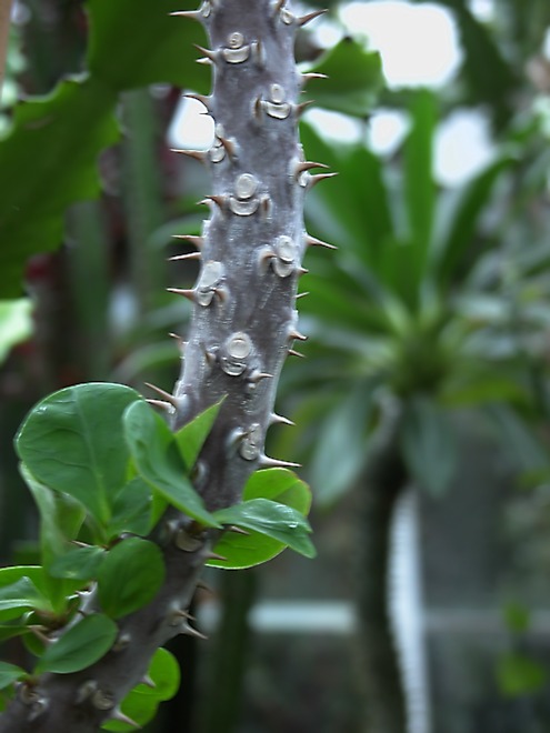 熱帶沙漠中才有仙人掌類的植物吧,大戈壁沙漠中應該沒有。昨天我在溫室中拍照的時候,有個爸爸對孩子說:基本上沒水,所普通植物很難生存。這些植物就只好用自己的身體,多多存儲水。