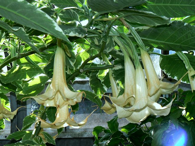 曼陀羅花,白色的比較多,常見的都是白色的: