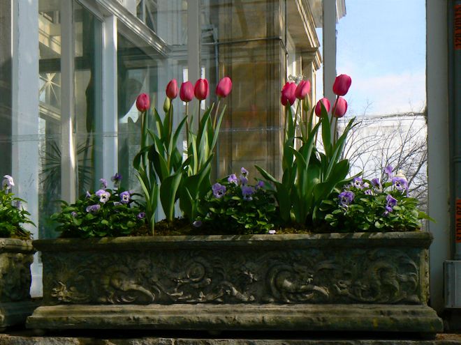 花房裡鬱金香開花了,現在只有一種,胭脂紅色,我喜歡,據說賈寶玉也喜歡這顏色。