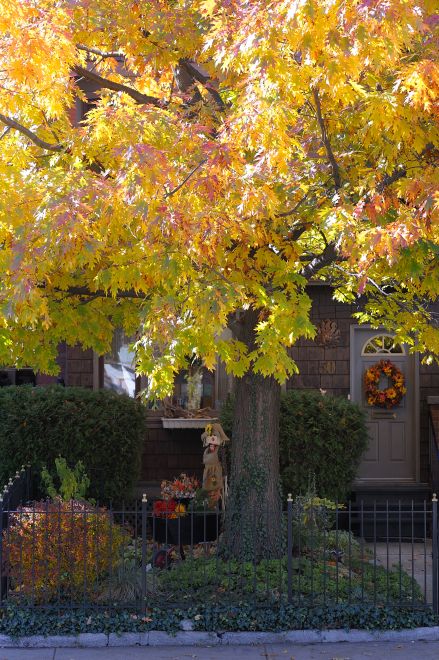 我家對面一棵橡樹,每年這個時候我都要對著對面的人家拍幾張照片的。