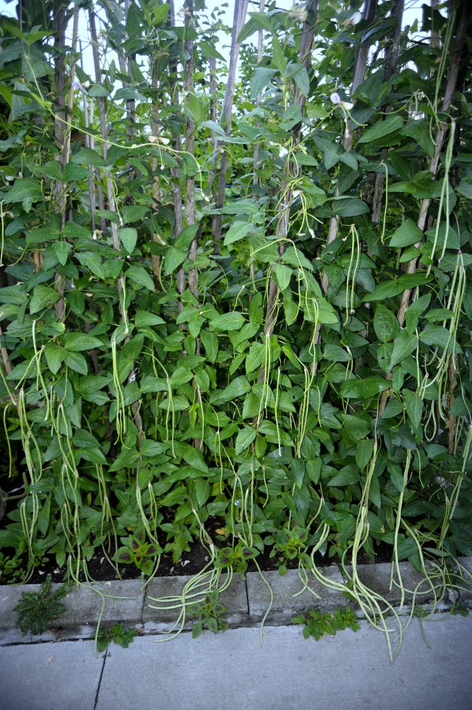 由於肥料充足,今年的雨水又好,豆角長得不錯。普通的都有 0.6 米長,比較長的有 0.7 米。拿把尺比一下,就知道木匠婆的豆角有多長。