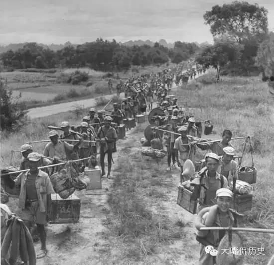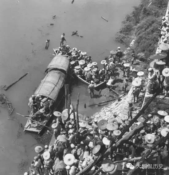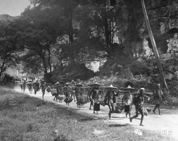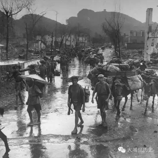 行军中的国军,都穿着破破烂烂。看上去实在不像一直正规军队。