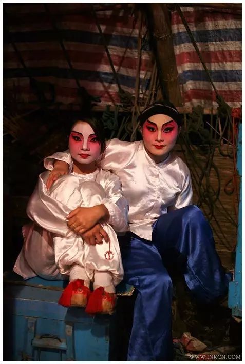 2008年夏,广东阳西沙扒湾,海边小镇的夜晚,一个乡间粤剧团的酬神演出,我在后台和演员们聊天,她们两个是我的老乡,我说把照片寄给你们吧,她们说,我们东奔西跑,很少在一个地方停留,收不到的。