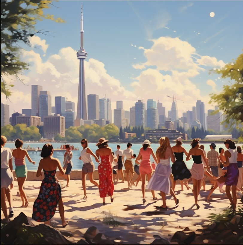多伦多终于也三十度了。 天气预报台又吓人地说体感温度40度!