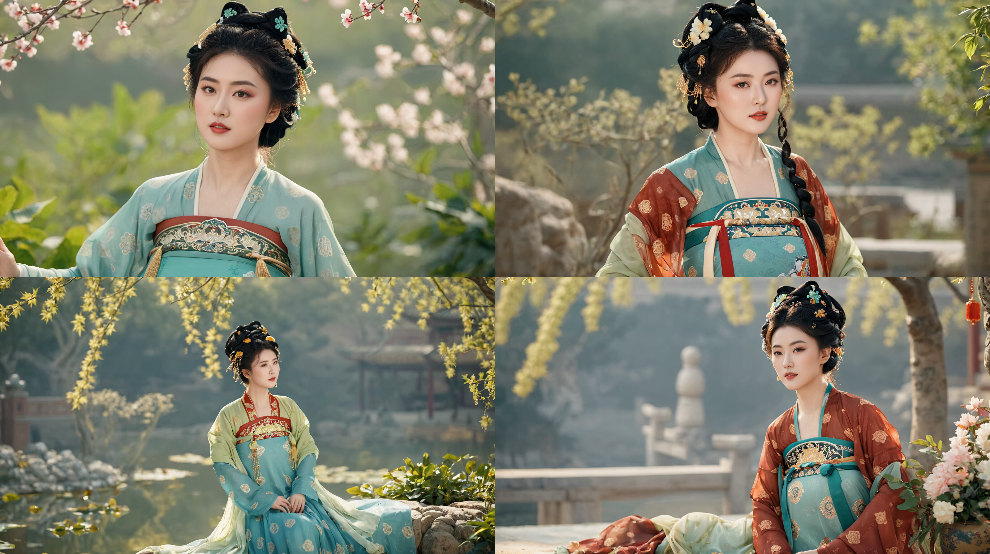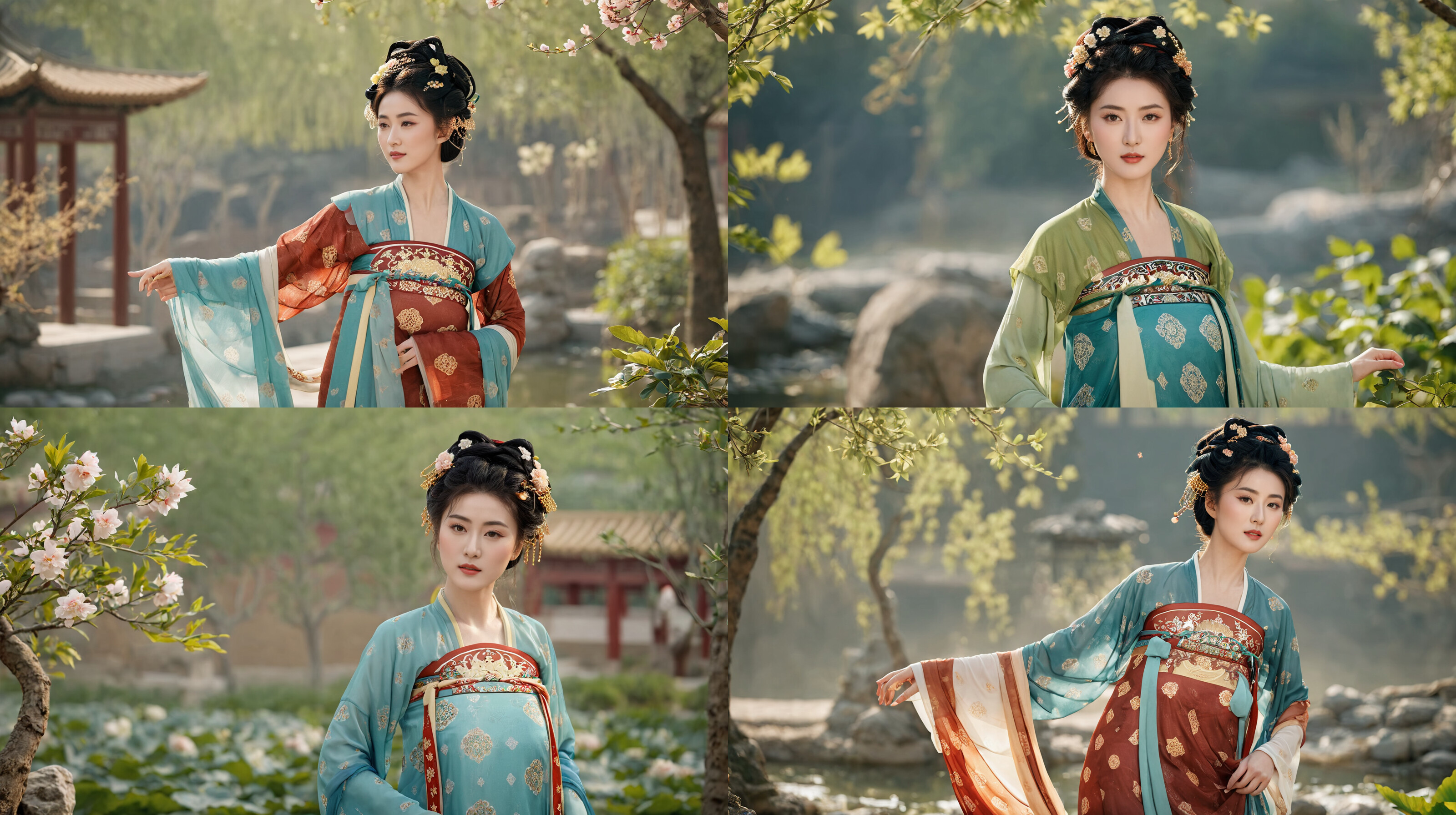 的确, 这个SD不知道唐朝和杨贵妃的故事,我加了一个唐朝服装的Lora,,他画出了几个清瘦的美女。