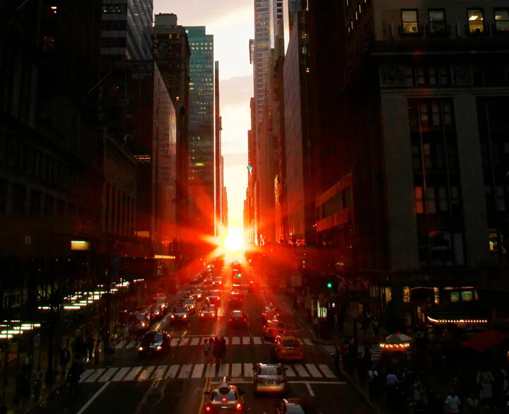 - [Torontohenge:今天下午6:20,太阳将坐在地平线上,两边都是建筑物。这一现象被摄影师称为“Torontohenge”,是对巨石阵的致敬。你可以在东西向街道上,如Wellington、King、Adelaide和Richmond街,欣赏到这份美景 ]