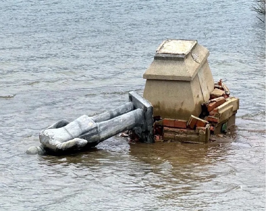 2025 . 1月底因嘉义大埔地震倾倒,铜像「水上漂」奇景不再;