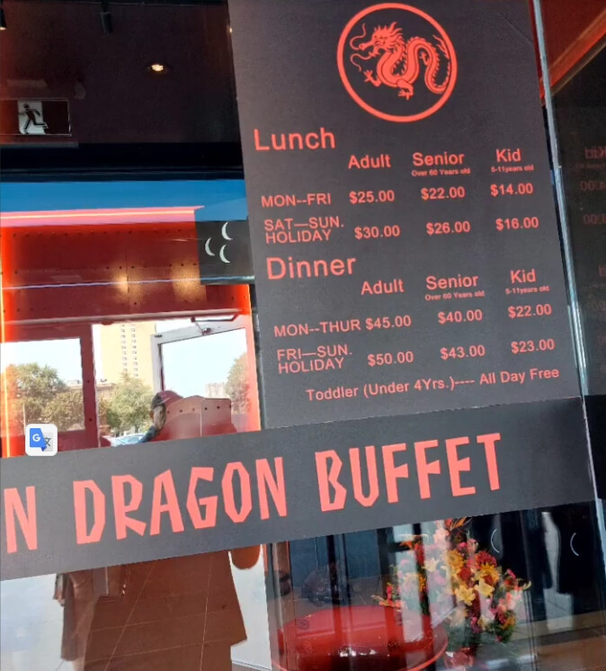 其实其它类型的中餐馆也都涨价了, 一家人点几个菜,吃一桌也要一两百刀,算一下也差不多上面自助餐馆的个人平均价。物价上涨了,最后都摊在消费者身上。