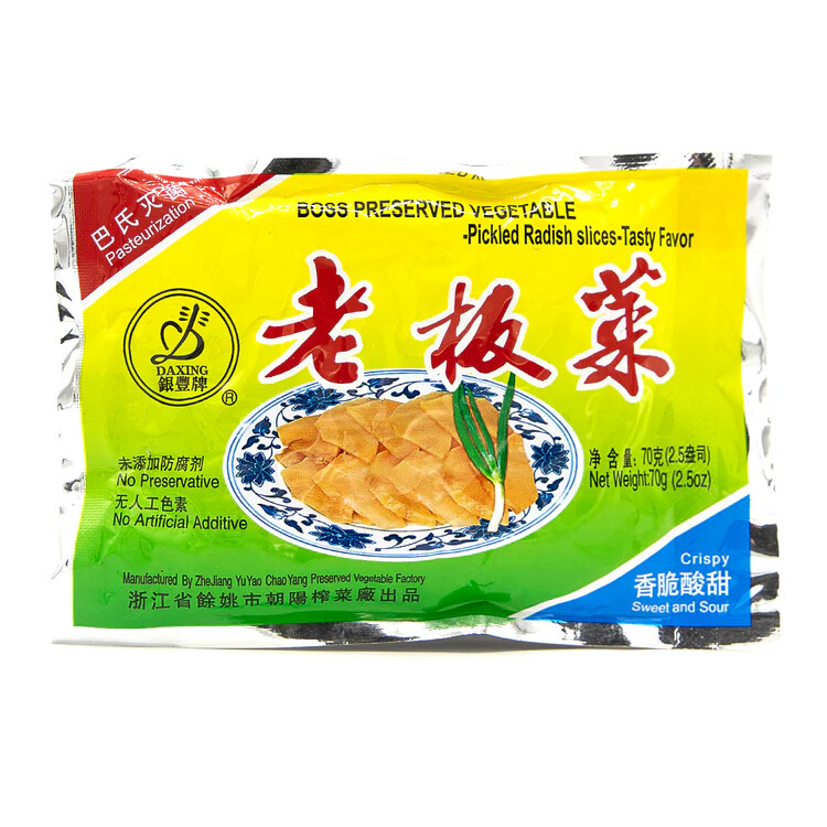 注意老板菜有粗丝,细丝,粗丁,薄片四种,我们都是买细丝再改刀切成小丁。