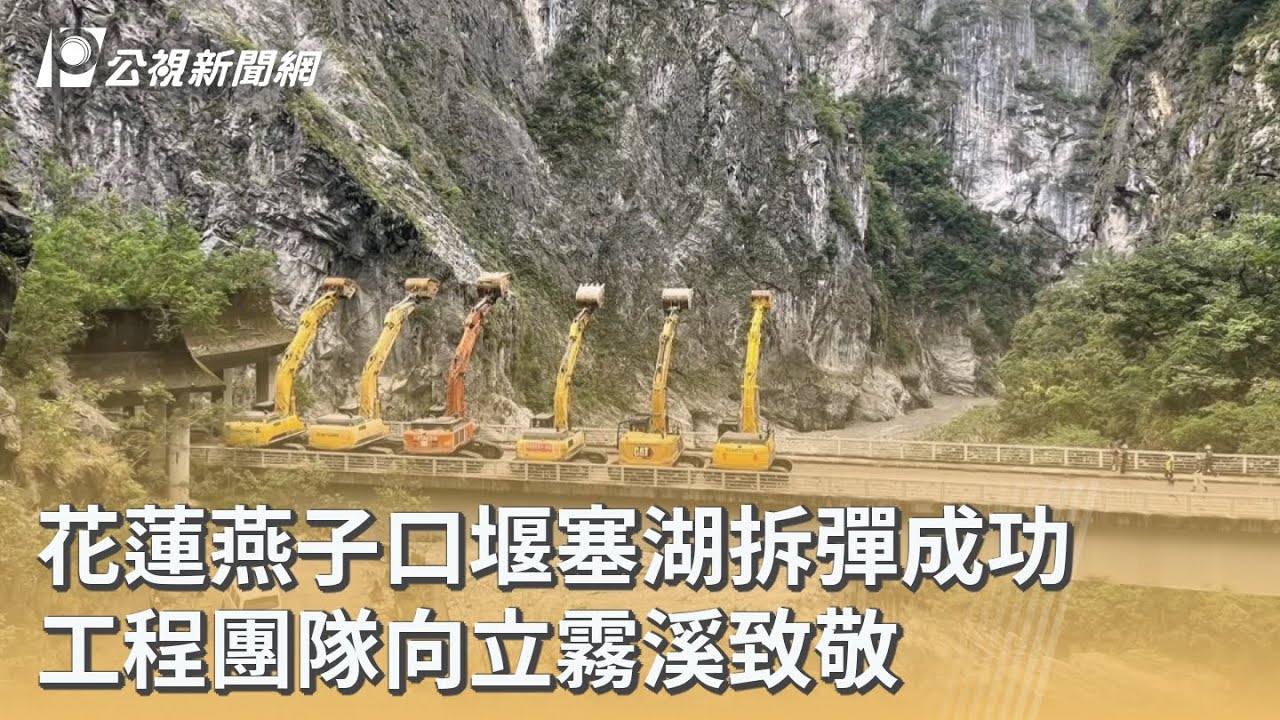感人画面曝!花莲燕子口堰塞湖平安落幕 怪手排排站向山林致敬