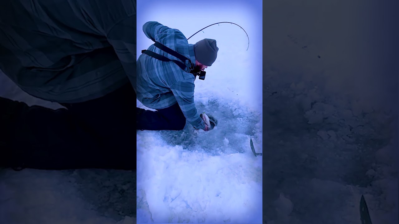 我的同事有伴我打窝的。我能看见鱼在下面游来游去,就是不怎么肯咬我的钩。一整天,只有一条大鱼咬钩,我还在担心我的线够不够解释。轻轻拉第一次,鱼有反向回应,又轻轻拉了两次,鱼似乎已经吞钩,第四次拉线,已经到冰洞口,可那条狗鱼一个翻身就跑掉了。