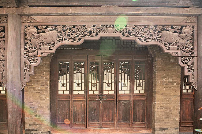 第一幅圖的木雕後面 , 有兩道磚柱 , 那磚砌的結構有點像平遙古城 , 這裡大概是山西一帶吧 .