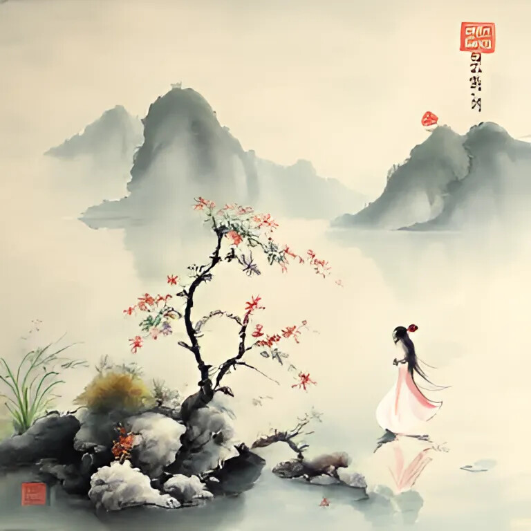 Deepseek 又发布了一款开源模型 janus-pro-7B,里面有个画画的功能。指示它画了一幅山水画:prompt: Chinese painting with mountain, lake and a girl.
